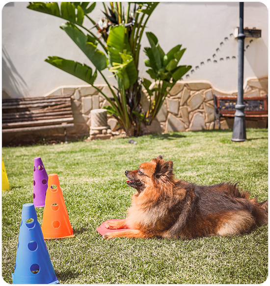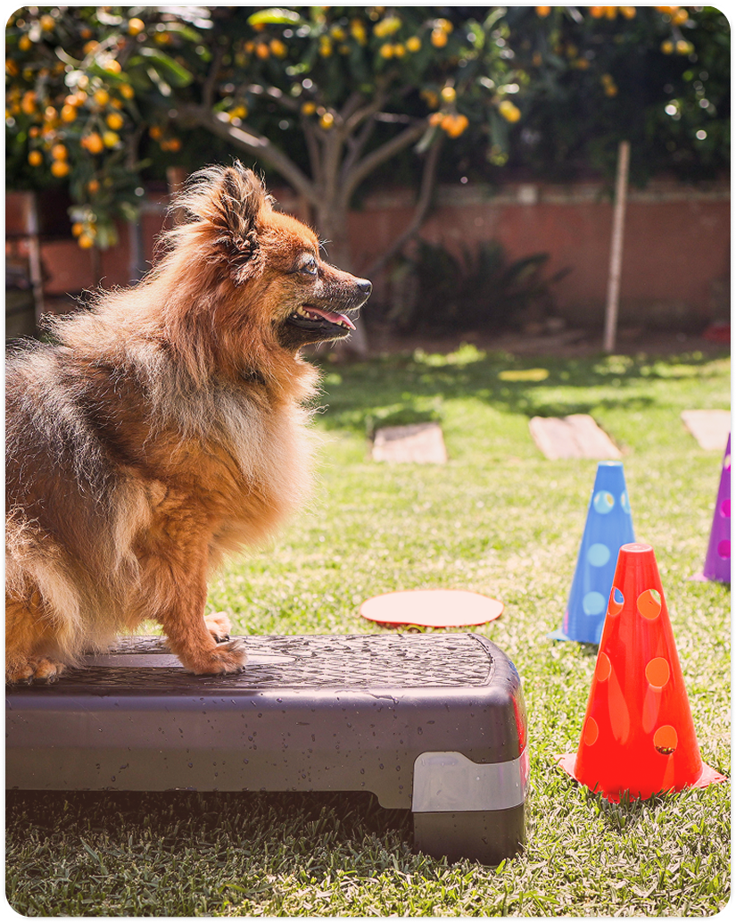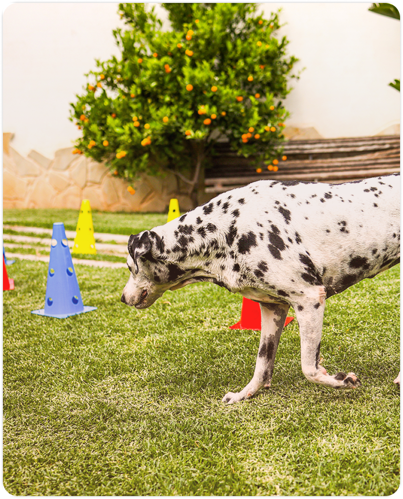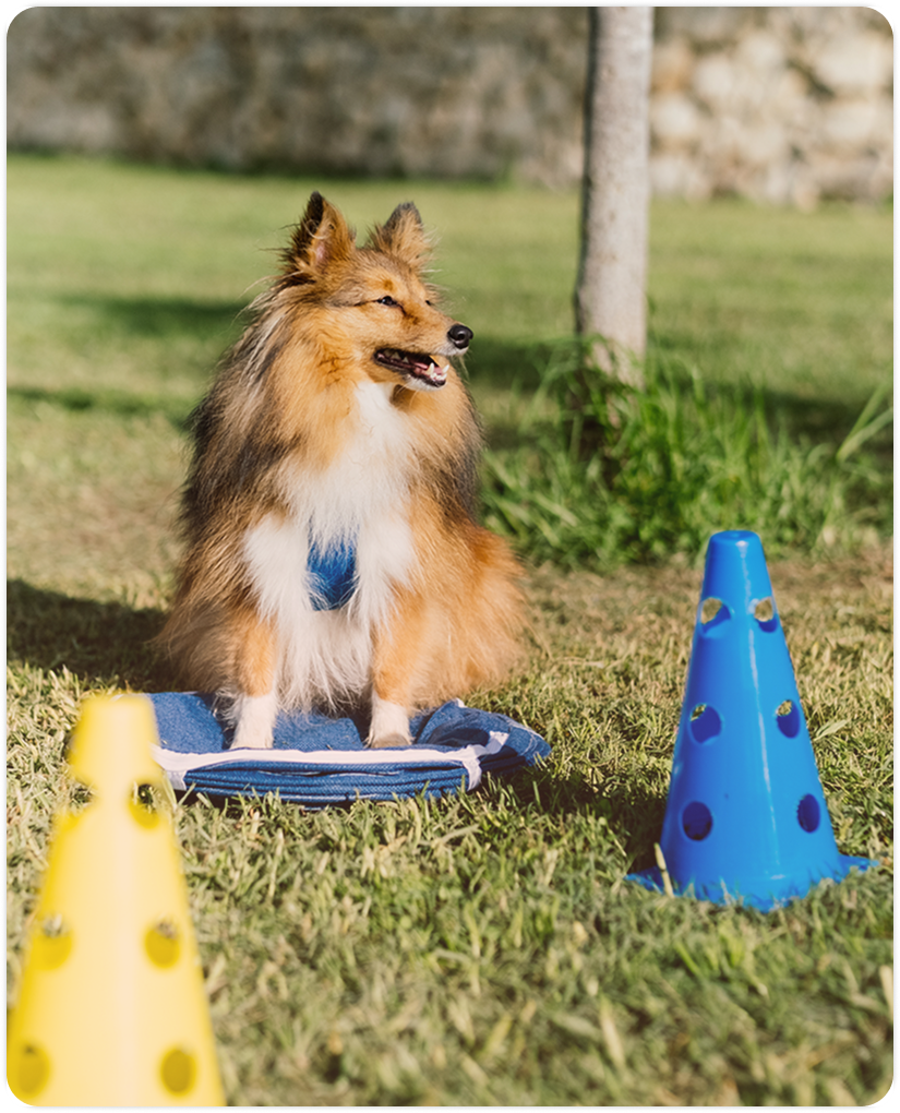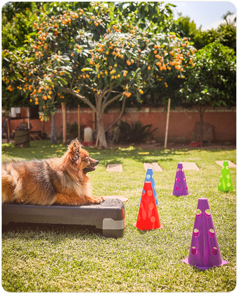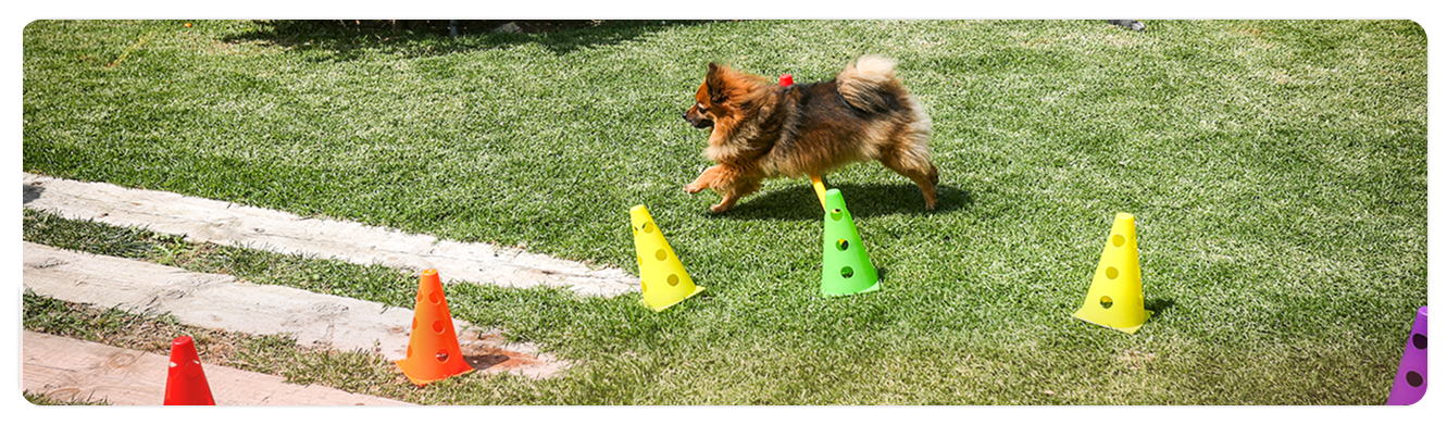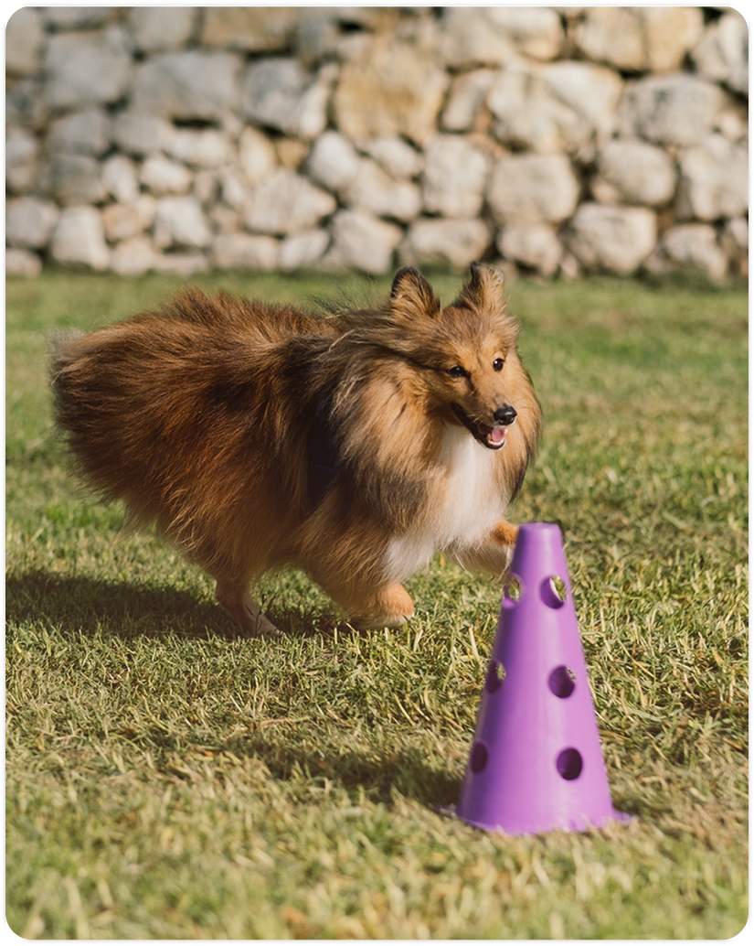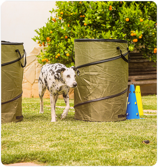 - Diversification : découvrir différents obstacles et différentes commandes (saut, tunnel, tricks sur la cible, passer entre des objets, passer derrière un objet, faire demi-tour autour d’un baril, monter sur une plateforme….)